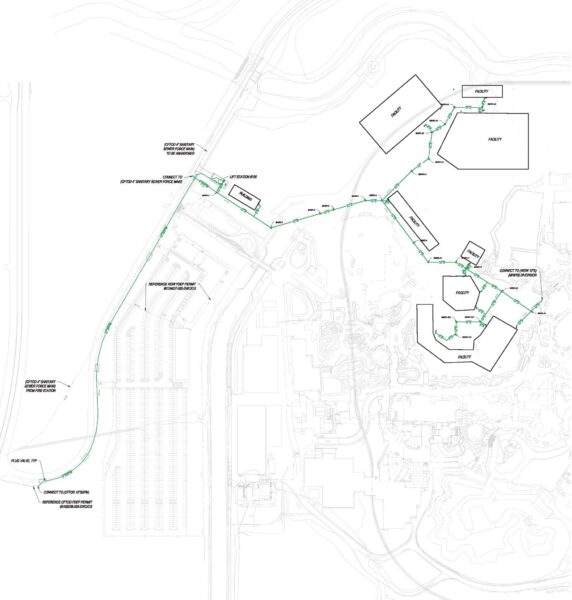You can see several spots labeled “FACILITY” that are connected by utility lines on the documents. The plans also detail that utility lines will be connected to the existing Magic Kingdom buildings and utilities. The largest building looks to be in the Villains Land area and it’s roughly 70,000 square feet.