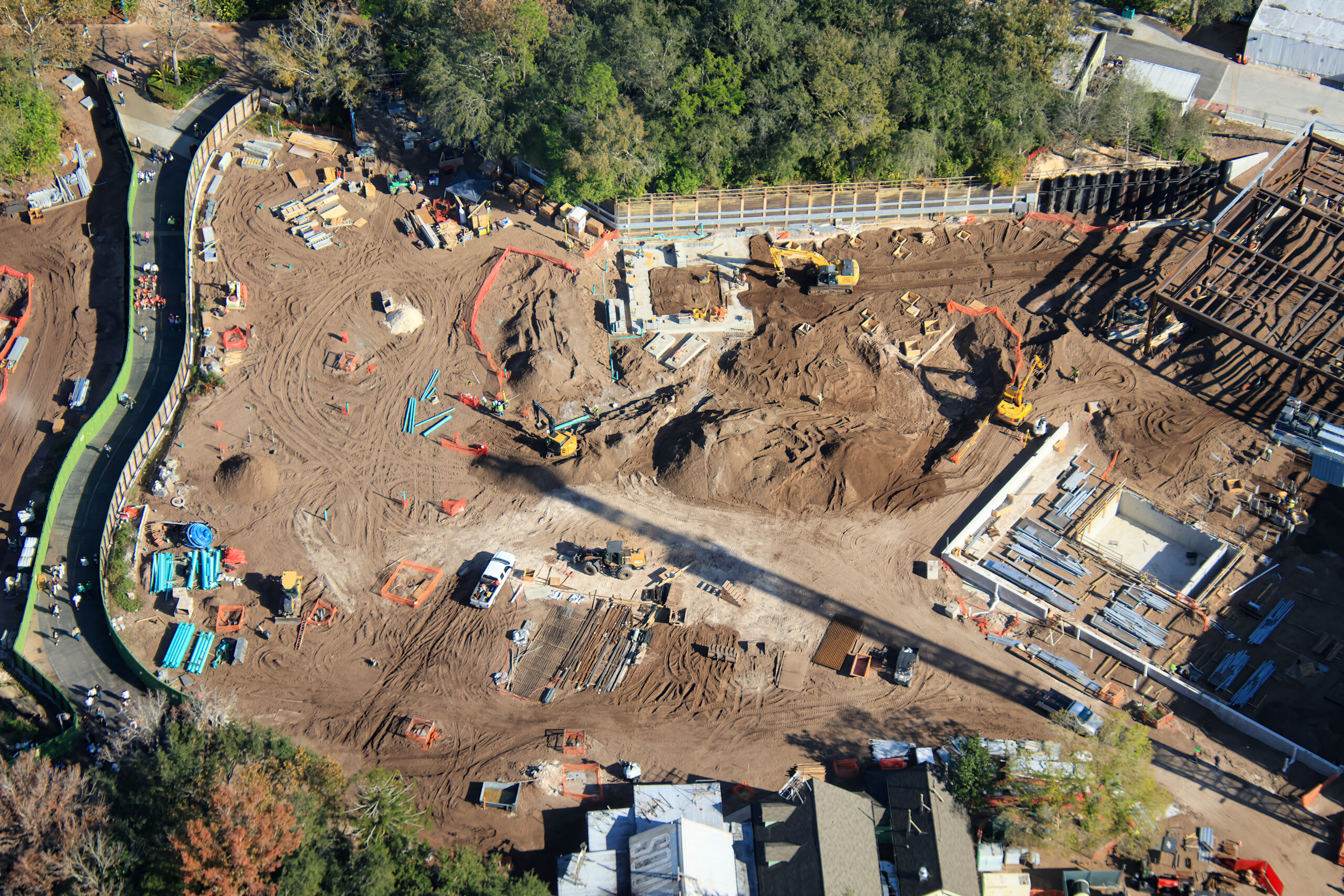 Pueblo Esperanza will also have a village, and you can see where it will be — next to the Encanto ride in this photo, as well as the progress being made on it.