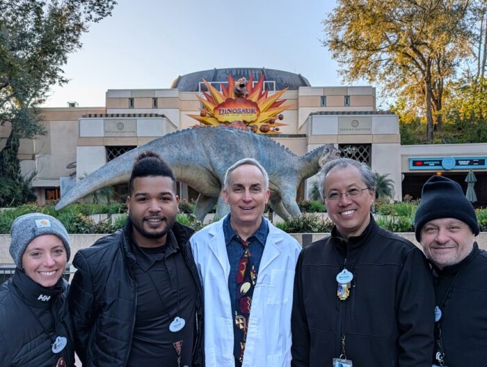 So what was going on behind the walls? Well, Cast Members had one last chance to say goodbye to DINOSAUR…and Dr. Seeker actor Wallace Langham actually stopped by to share this moment with them!