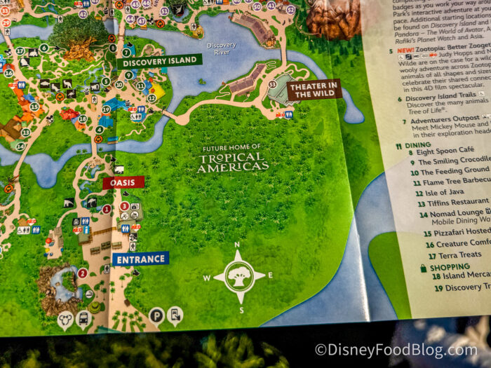 Not only that, but Animal Kingdom has officially gotten rid of any mention of DinoLand on its park map. A new park map now shows an all-green area with “Future Home of Tropical Americas” in place of where DinoLand used to be. It’s officially the end of an era, people!