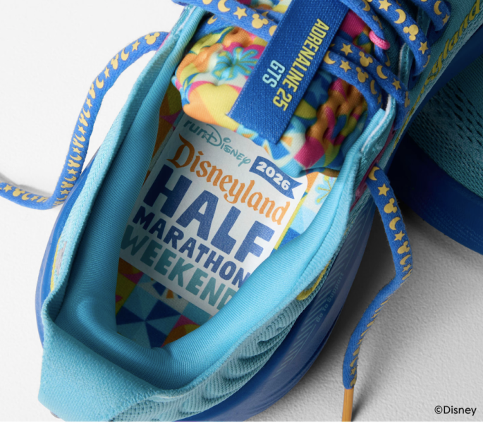 This special edition pair of Adrenaline 25s features a “gradient from blue to white across the whole shoe makes a bold splash, while subtle nods to Mickey Mouse and the runDisney motto add magical flair.”