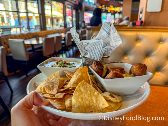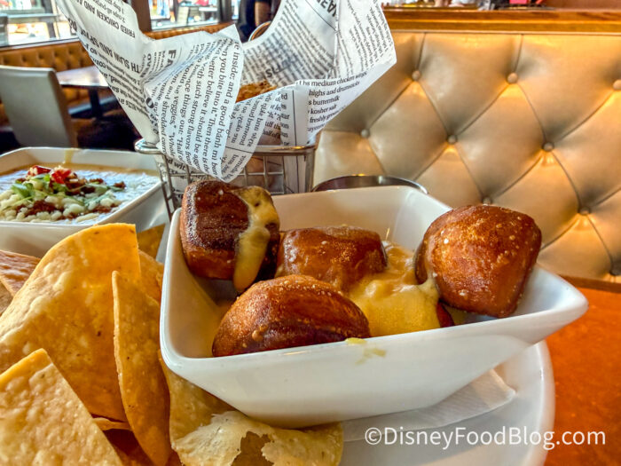 Lastly, we grabbed the Shareable Trio for $23.95. The trio included pretzel bites with beer cheese sauce, queso dip with chorizo and Fresno chillies, and southern-fried popcorn chicken with ranch dressing. Let’s go into everything one at a time!