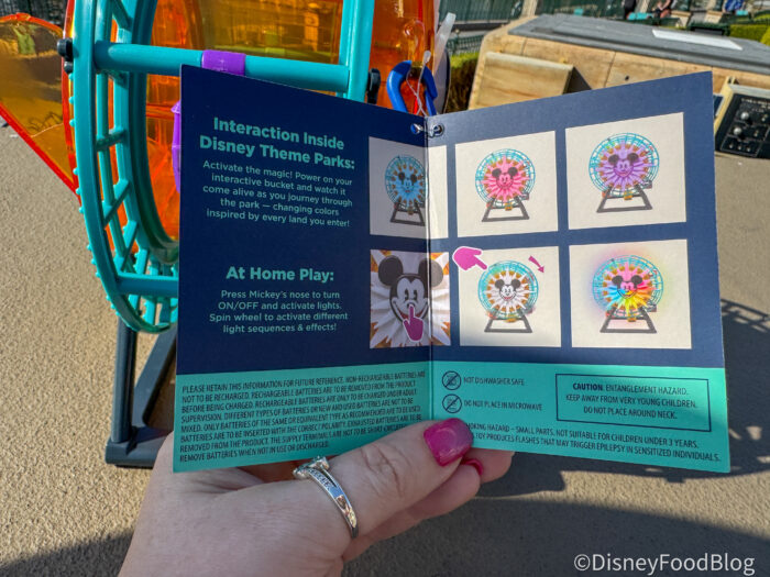 There’s even a tag explaining how the bucket interacts inside Disney’s parks AND at home including changing lights.