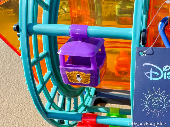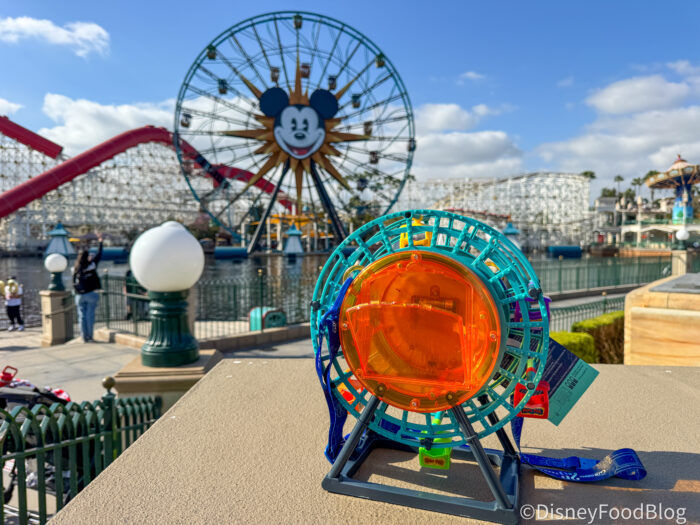 This little guy will cost you $55, and we picked ours up at the outdoor vending cart in Grizzly Peak. Yes, it comes with popcorn as well as a limit of 2 per person, per transaction. The bucket is shaped like the Pixar Pal-A-Round itself, complete with colorful gondola details and that unmistakable look of the real attraction. It’s basically a mini version of one of DCA’s most recognizable landmarks, except this one comes filled with popcorn instead of mild terror if you’re brave enough to ride the swinging cars!