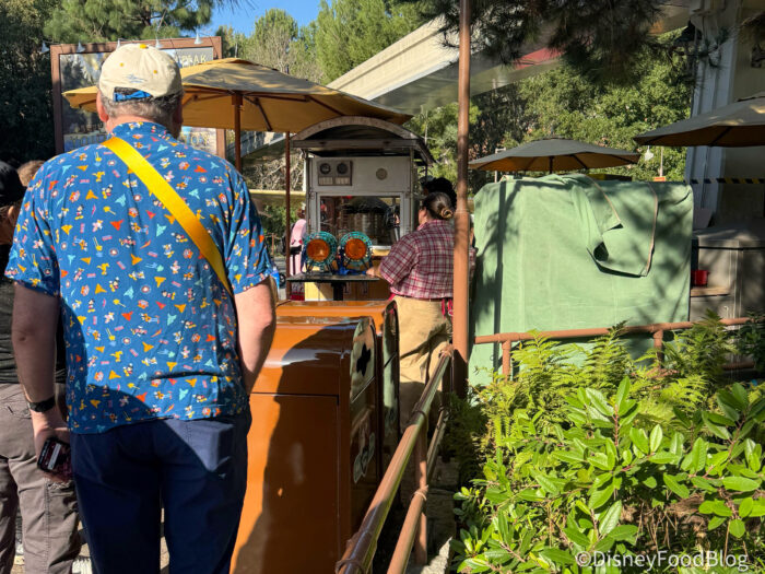 First things first, though, you’re going to want to place your mobile order for this popcorn bucket early! Even with a super early pick up, we experienced quite the line when it came our turn to grab our own.
