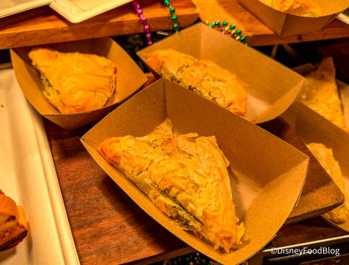 Finally, we dove into the Spanakopita from Greece. This is a Savory Greek Pastry Filled With Spinach And Feta Cheese Wrapped In Crispy Layers Of Phyllo Dough. The pastry was similar to that of the lobster tail, although this is a savory snack. Inside, you’ll find spinach, but it’s not the most dominant flavor, thanks to the creamy feta. It’s not anything we’d go out of our way for, though, because there are more unique and flavorful snacks available.