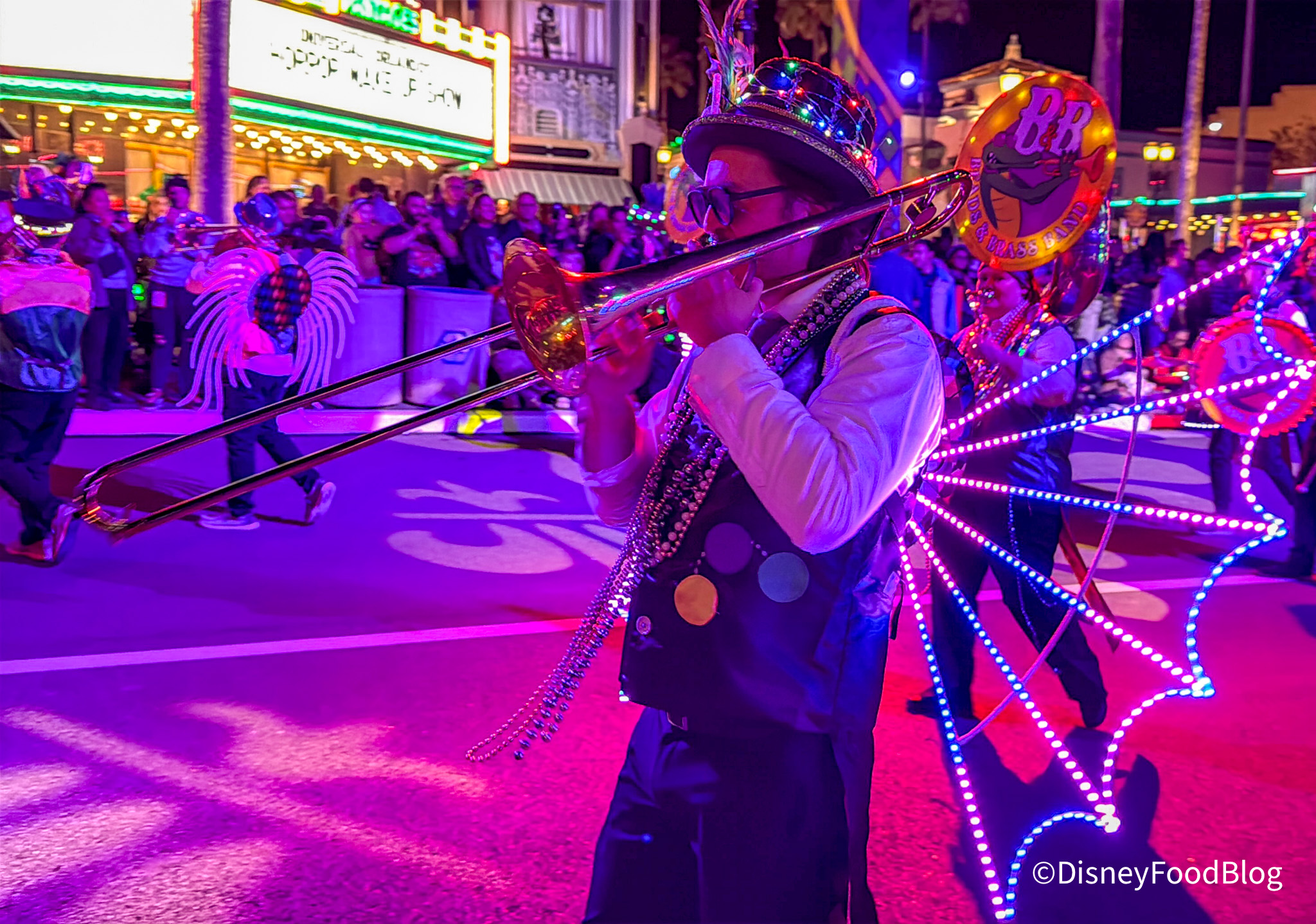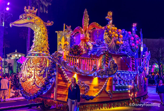 Disclosure: In nearly all circumstances, Disney Food Blog writers and photographers pay full price for their own travel, hotel, food, beverage, and event tickets. We do this because it’s important to us as journalists to ensure not only that we give you unbiased opinions, but also that you can trust us to do so since we’re paying our own way. On rare occasions, when we are invited by a company to attend a preview as media, and when we choose to accept that invitation, we will always make you, our readers, aware of that situation. Today, we were invited by Universal to attend their media preview of Mardi Gras. Note that when we attend events as media we are 1) Not required to review that event/food on any of our channels, and 2) Not required to review that event/food favorably. You can always count on DFB to give you a 100% unbiased and honest review of any event that we attend, food that we eat, or beverage that we drink. You can see more in our Disclosure Policy. Thank you for reading. — AJ