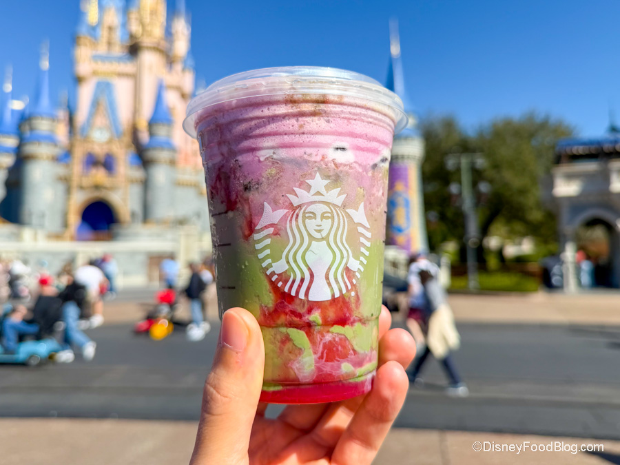 We picked the Iced Double Berry Matcha up at Main Street Bakery in Magic Kingdom, but it’s available now in all Starbucks, so check it out for yourself if you don’t believe us.