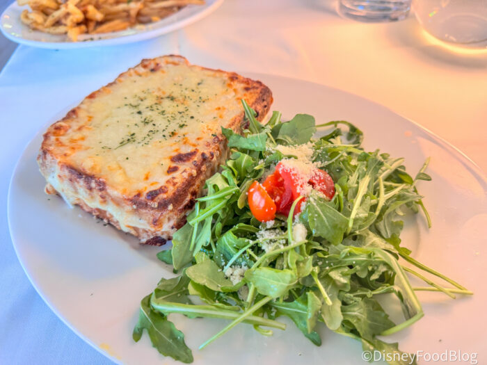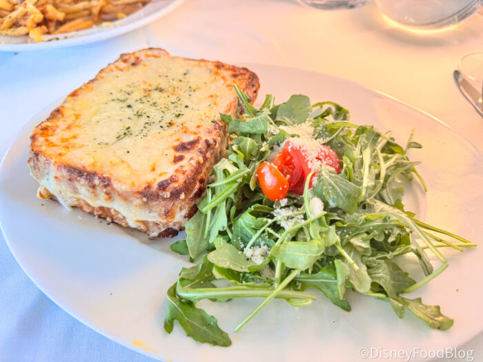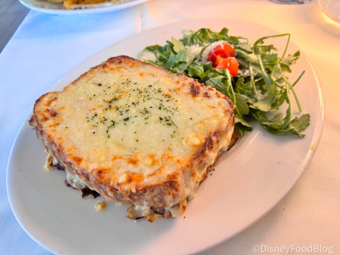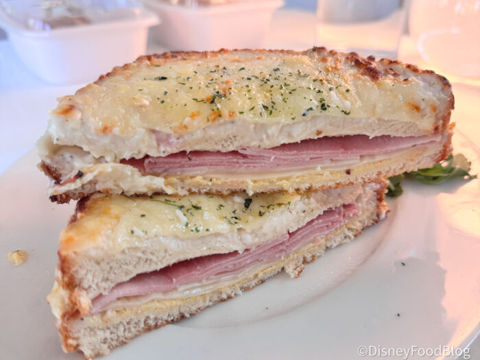 This one was honestly a little surprising, and not necessarily in the way we expected. We’ve had a few different versions of this sandwich around Disney World (especially at places like Les Halles), so our reporter went into this one thinking it would be a pretty classic, comforting ham-and-cheese situation.