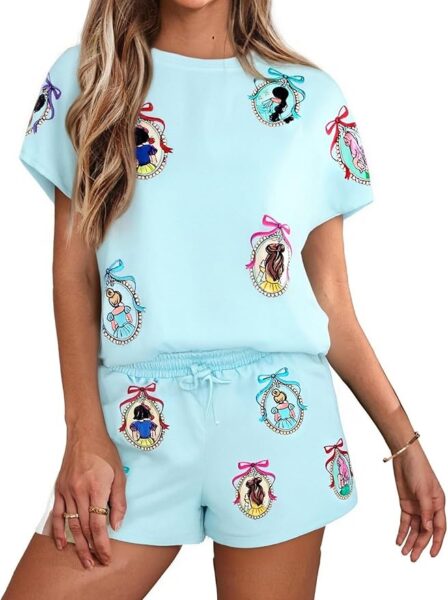 Now this is a perfect park look! This set is a Magic Kingdom fan’s dream. This set is made with a high-quality material that’s skin-friendly, breathable, and soft to the touch. The overall pattern has different princess portraits inspired by Cinderella, Snow White, Belle, Ariel, and more. It’s comfy AND cute!