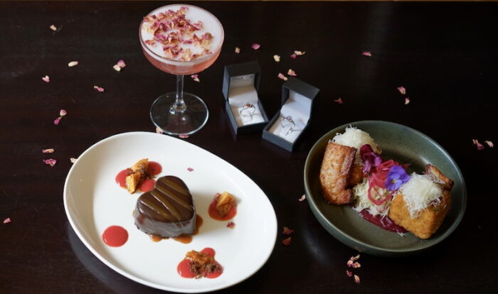 There’s also Love At First Crunch for $13. It’s a velvety heart-shaped chocolate mousse with a layer of rich caramel and honeycomb crunch that’s served on a chocolate biscuit base with raspberry purée.
