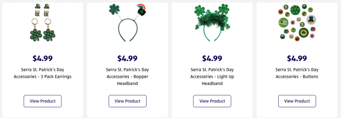 Or, how about these St. Patrick’s Day accessories? You can get headbands, earrings, and buttons. These could make for fun things for your kiddos to wear at home or at school.
