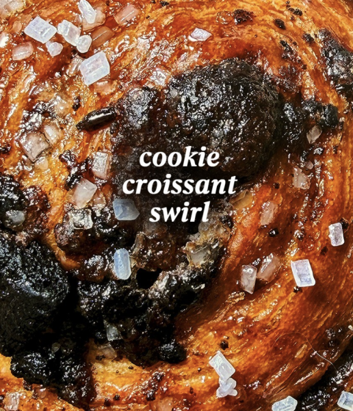 On Starbucks’ Instagram, they showcased close-up photos of six new pastries, starting with this Cookie Croissant Swirl. It looks like a croissant swirl filled with chocolate. Maybe melted chocolate chips or just a chocolate glaze. The treat is topped with sugar, kind of like the chocolate chip muffins. Is it too soon to say we’re in love? This one definitely got people’s attention on social media…and we can see why!