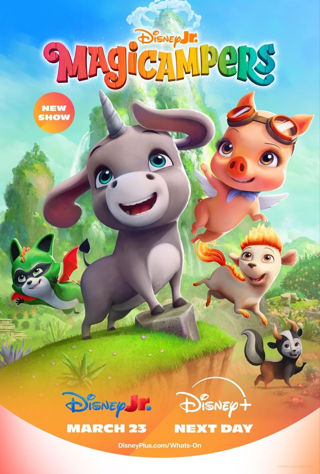 Magicampers stars Cassie Glow as Darly, Benjamin Mackey as Loomis, Mason Blomberg as Dracoon, and Emmy Award winner Uzo Aduba (The Residence, Orange Is the New Black) as nature spirit and camp leader Treena. The series premieres on Disney Jr. on March 23rd, and the first six episodes debut on Disney+ the next day.