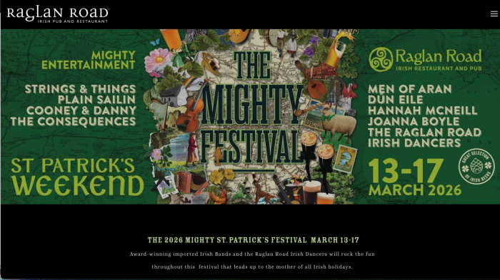 In March, Raglan Road celebrates St. Patrick’s Day in a BIG way, and we look forward to it every year. Now, it’s official — The Mighty Festival is coming BACK this year from March 13th-17th, and trust us when we say you won’t want to miss it!