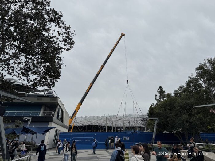 Some major progress is taking place at Avengers Campus right now. As you can see, the framework of one of the buildings is slowly but surely coming together!