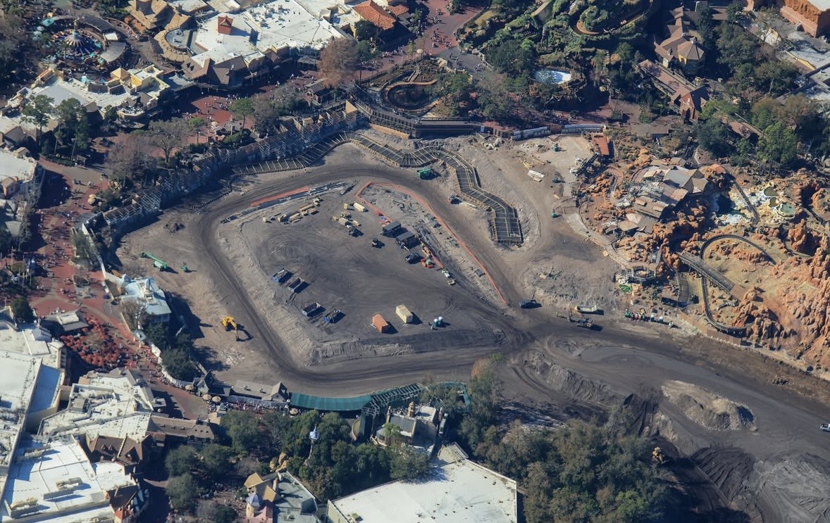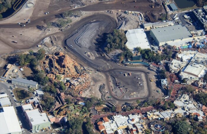 New photos show an aerial view of the construction progress at Piston Peak National Park in Magic Kingdom. We have been keeping a close eye on the construction from the ground, but with all the construction walls, it can be hard to see what is happening in the area.