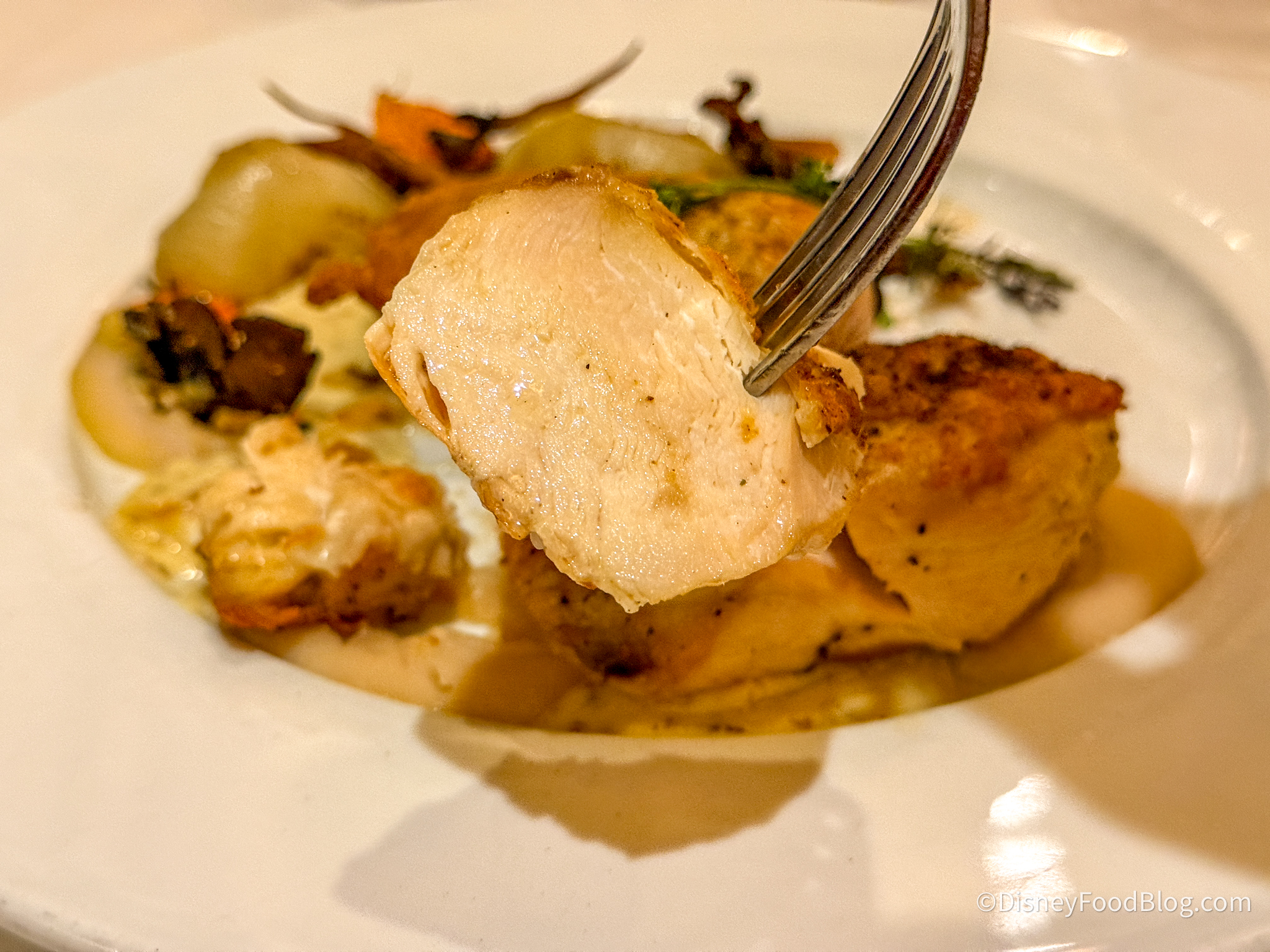 Not only is the chicken itself beautifully seasoned and cooked, but the other additions on the plate really help elevate the dish as a whole. The white bean puree and mustard sauce is where a lot of the zing came from, and we loved it. At first, we thought there was too much gravy on the plate, but then we realized it was a wonderful way to give some extra flavor to each bite of chicken. It’s inventive, more exciting, and tastier than just your normal chicken, and that’s a win in our book!