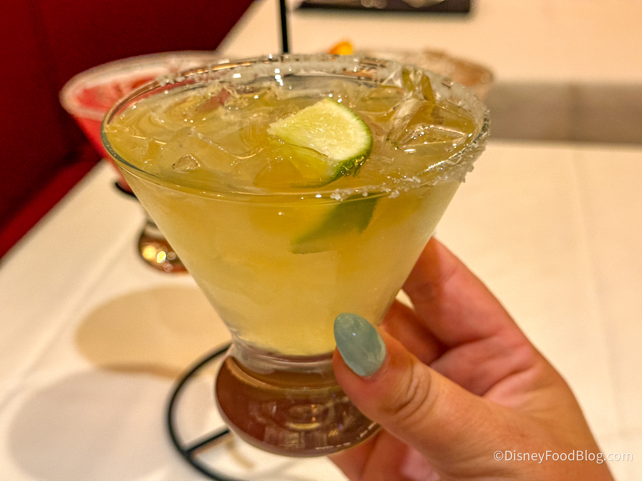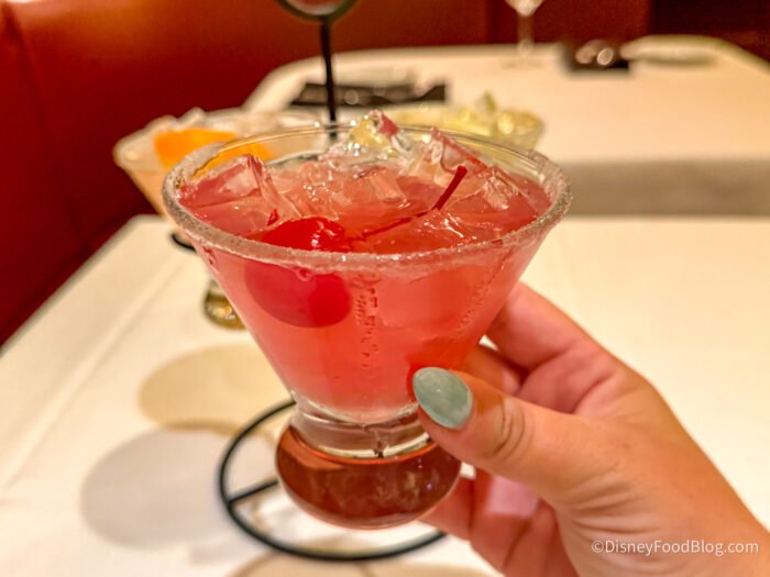 As for the Pomegranate Margarita, it tastes unmistakably of pomegranate. It’s tangy and fruity, and we loved the sugar rim, because it helped cut through the tang a bit.