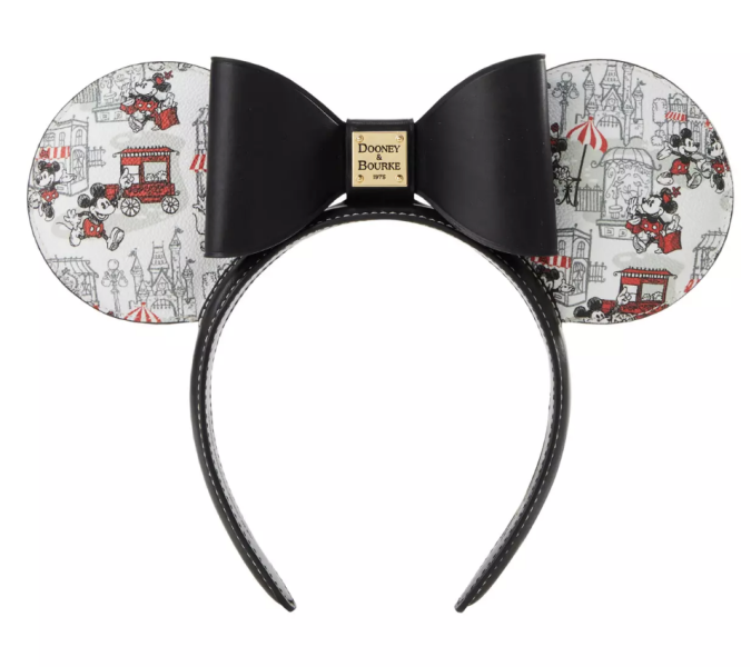 Is it really a Dooney & Bourke collection if there aren’t matching ears? The Mickey and Minnie Mouse Main Street Ears are also online, and they feature the same pattern on the ears. The ear band itself is black leather, as is the bow in the middle, and it’s complete with the gold “Dooney & Bourke” badge in the middle. We have a feeling these will also sell out quick, so grab them while you can!