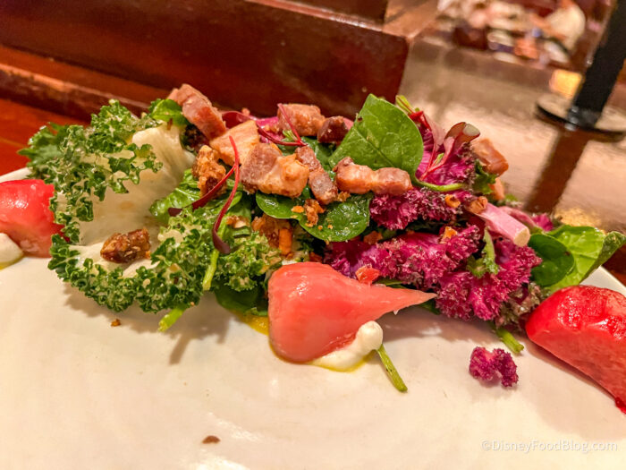 We also tried the Beet and Kale Salad appetizer for $13, which is Spinach, Warm Bacon Vinaigrette, Goat Cheese Cream, Beet Purée, and Candied Walnuts.