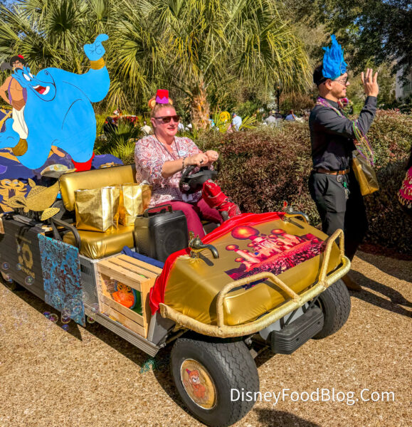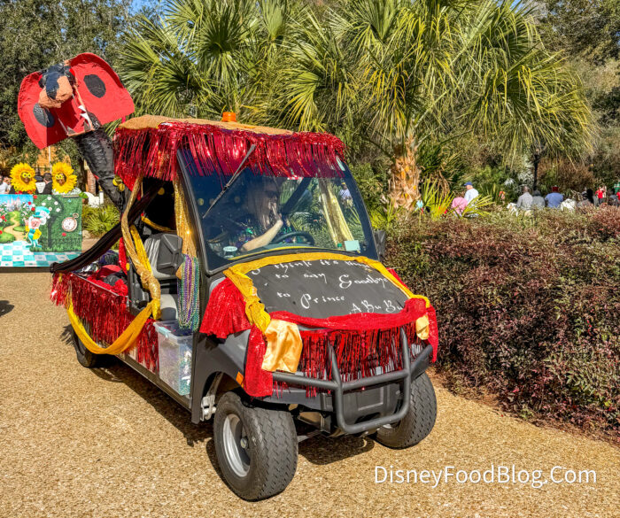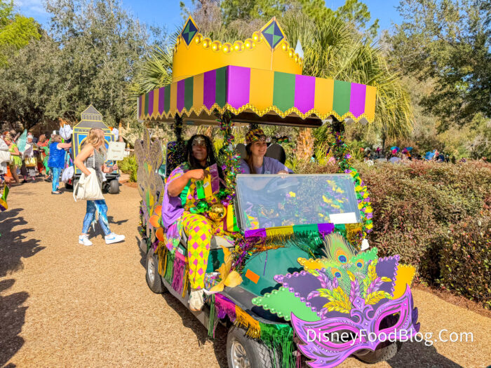 Grab your fluffy Mickey beignets and let’s watch a parade go by! The annual Port Orleans Mardi Gras Parade has returned, and these floats have blown us away. They’re golf carts decorated by Cast Members, and you can really see their creativity come through. The carts drive along the Sassagoula River from Port Orleans Riverside to Port Orleans French Quarter.
