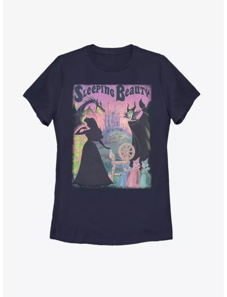 Last but not least, Sleeping Beauty fans are getting their moment. This Disney Sleeping Beauty Silhouettes Womens T-Shirt features a storybook-inspired rectangular design that centers on Aurora’s silhouette reaching toward the spinning wheel.