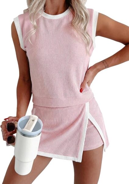 This Knit Tank Top and Split Lined Skirt Two-Piece Lounge Matching Set is actually adorable! The set features a tank top and matching skirt, and looks like the perfect pair for summer. It’s crafted from a premium blend of 75% polyester, 20% viscose, and 5% elastane. This fabric offers a soft, skin-friendly feel. It provides exceptional breathability and high elasticity, ensuring you stay dry and comfortable all day long. Once again, there are so many colors to choose from. Also, the set is 25% off!