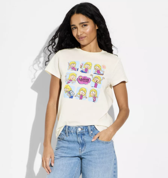 How could we not put this Lizzie McGuire shirt on our list? This t-shirt is for the early 2000s babies, because who hasn’t wanted to take cartoon Lizzie with them wherever they go? This shirt has the show’s logo front and center. There are also 8 versions of the cartoon showing off her silly personality. It’s cotton and loose-fitting for extra comfort and ease.