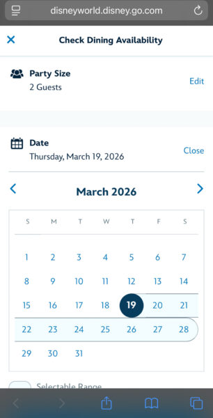 When making or modifying Park Pass Reservations in the My Disney Experience app, it’s not done within the app itself — when you click to Make or Modify Park Reservations, a new browser window opens, and you have to finish making those selections there. Disney may have updated the Advanced Dining Reservation process to match the Park Pass Reservation one, but we’re hoping that’s not the case.