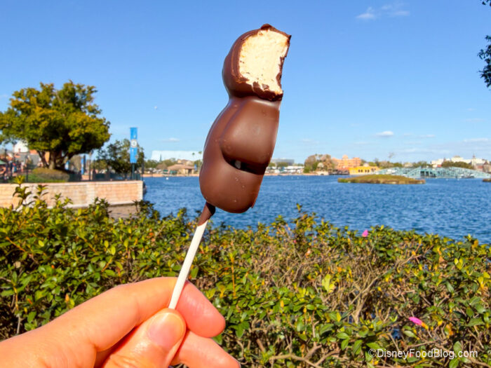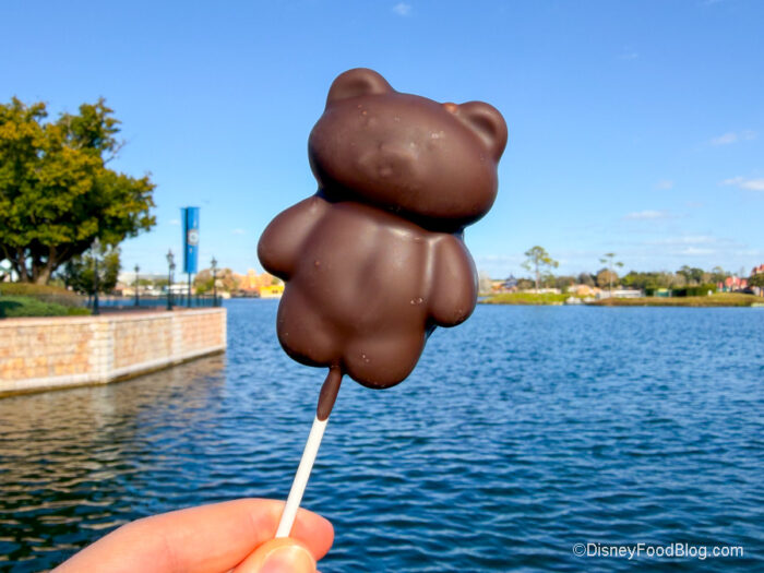 Introducing the Bear Shaped Chocolate for $6.34. This is a marshmallow pop all wrapped up in a chocolate bear. But unlike many of the chocolate marshmallow wands you get in Disney World, the chocolate here is a beautifully bitter and sweet dark chocolate. That makes this treat feel even more decadent. But, also, just look at it…how could you resist this little cutie? He’s giving Lindt bear vibes, right?
