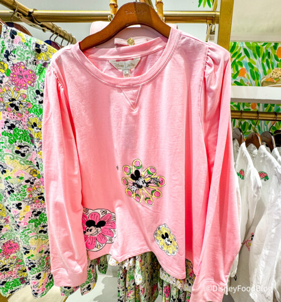 A burst of florals and some retro Mickey Mouse artwork make this Lilly Pulitzer design truly original. The puff sleeve sweater is crafted from a soft French terry fabric you’ll want to wear at the parks and beyond!