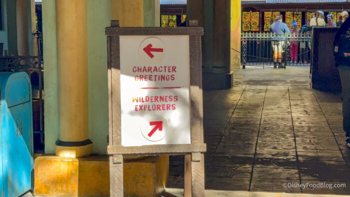However, this area isn’t completely without entertainment! There’s now a sign that directs guests to head one way to check out the Wilderness Explorers station, or another way to check out the character meet and greets that are now in the area.