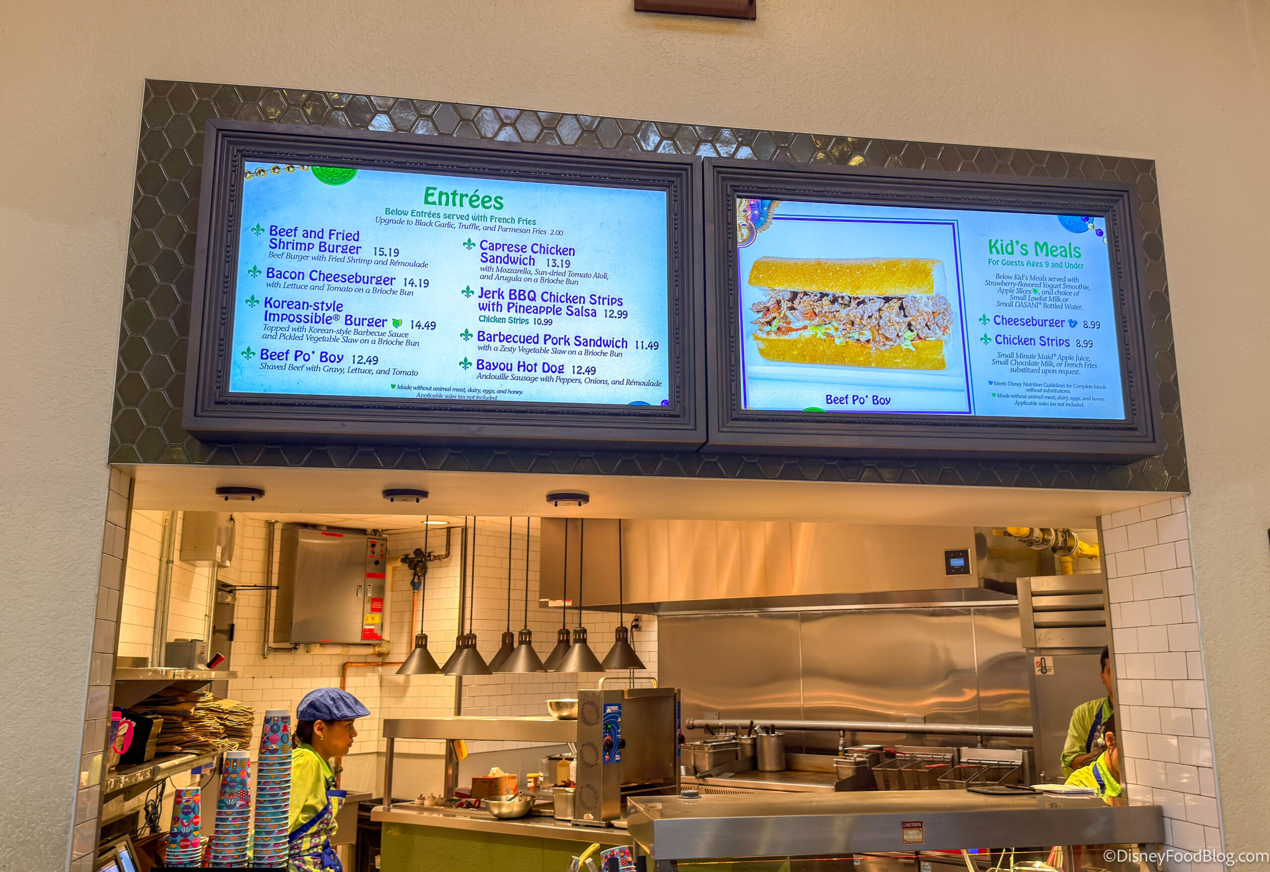 Disney World’s Value Resorts and Moderate Resorts all have food court-style dining options, and this is very similar to the others in its setup. When you first enter, you’ll find the various food “stalls” where you can order different types of cuisine.