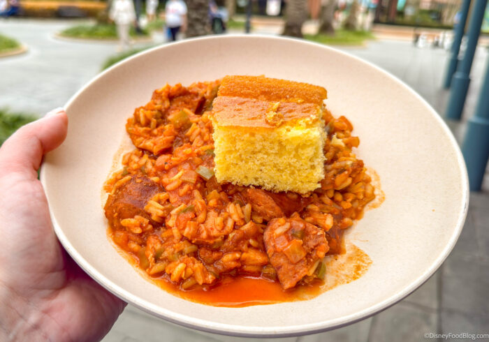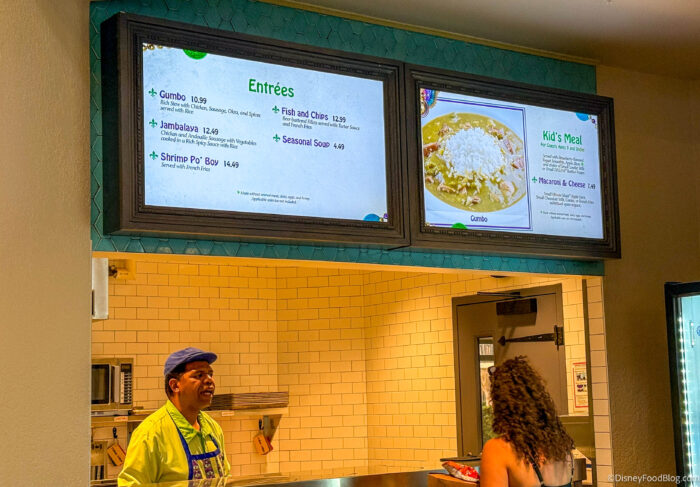 - You’re craving some Louisiana classics. The Cajun fare here is actually pretty decent compared to quick service options in Disney World, which makes this one of the better food courts at the hotels. AJ even goes out of her way to go order that Jambalaya!