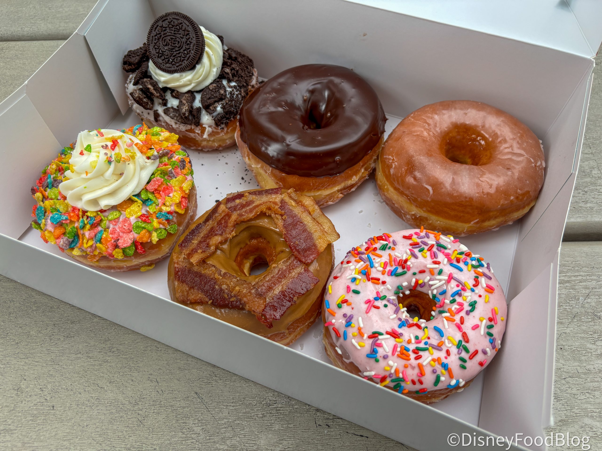 Last but not least, they’re spending a day in Disney Springs. For breakfast here, we’re going to recommend Everglazed Donuts & Cold Brew. John is ordering a donut from “The Funky Bunch” selection for $6.50, along with a Peach Raspberry Refresher for $6.50. Jane gets a classic donut for $4.95 but levels up her coffee game by ordering the Reese’s Nitro for $6.95. That makes their breakfast total $24.90.