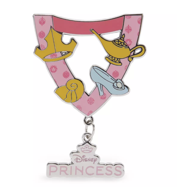 If you’re someone who loves Disney Princesses, then the Disney Princess Disney Pin Trading Dangle Pin will be one you can’t pass up. It features the words “Disney Princess” on the bottom, while also featuring some iconic items from Disney Princesses on the top, such as a shell for Ariel, Cinderella’s slipper, the Genie lamp to represent Jasmine, and Aurora’s crown. Look even closer, and you’ll find additional details on the allover pattern that represent more Princesses!