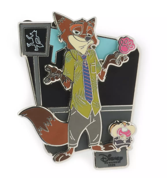 Disney Visa Cardmembers also have exclusive access to the Nick Wilde Pin, but only for a limited time! The pin features Nick himself holding a Pawpsicle while he stands in front of a crosswalk. He’s joined by none other than Nolte, also enjoying his own sweet treat.