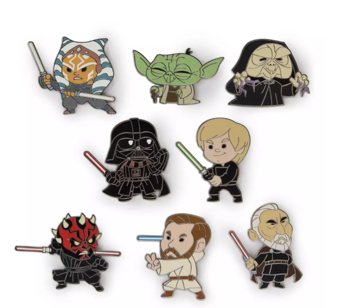 Love blind packs AND Star Wars? Then the Star Wars Light Side vs. Dark Side Mystery Pin Blind Pack is perfect for you. In each pack, you’ll get two different pins. There are a total of eight to collect!