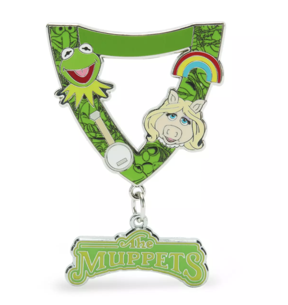 What’s better than a dangle pin? A dangle pin featuring The Muppets, and that’s exactly what The Muppets Disney Pin Trading Dangle Pin is. It’s got The Muppets logo on the bottom, complete with Kermit, Miss Piggy, Kermit’s banjo, a rainbow, and an allover print featuring more characters on the top.