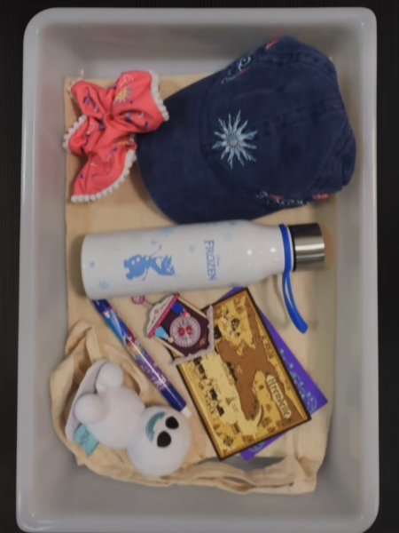 On the official Disneyland Paris Instagram account, Disney released an adorable video of what looks like bins moving through a security screening, and in each one, there’s new merchandise we’ll be able to see in the parks — specifically in World of Frozen!