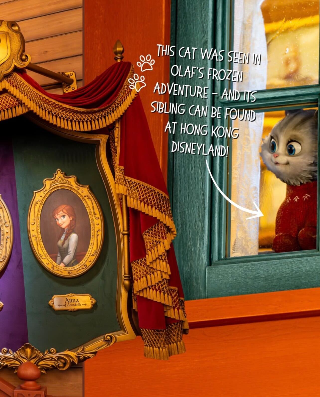 You can even spot a cat that was in Olaf’s Frozen Adventure. The cat’s sibling is in Hong Kong Disneyland.
