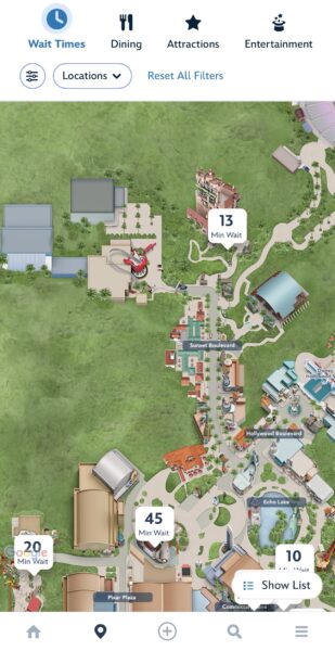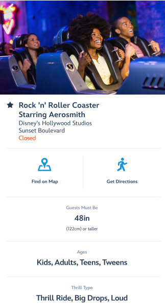 Of course, in the 21st century, Disney’s maps aren’t only paper. There’s also a full map available on the Walt Disney World My Disney Experience App, where the Rock ’n’ Roller Coaster is shuttered with no wait times.