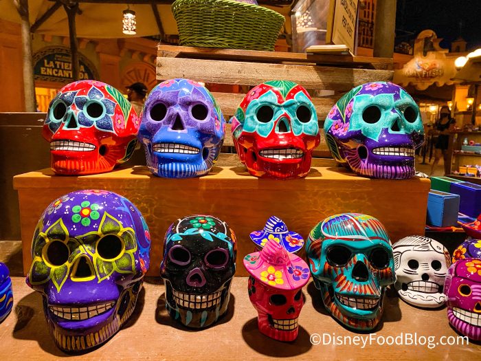 The Mexico pavilion offers a litany of handcrafted items on sale in the Plaza de los Amigos marketplace, including wooden figurines, clothing, musical instruments, and our personal favorite: Colorful glass skulls celebrating Dia de los Muertos, AKA the Day of the Dead.