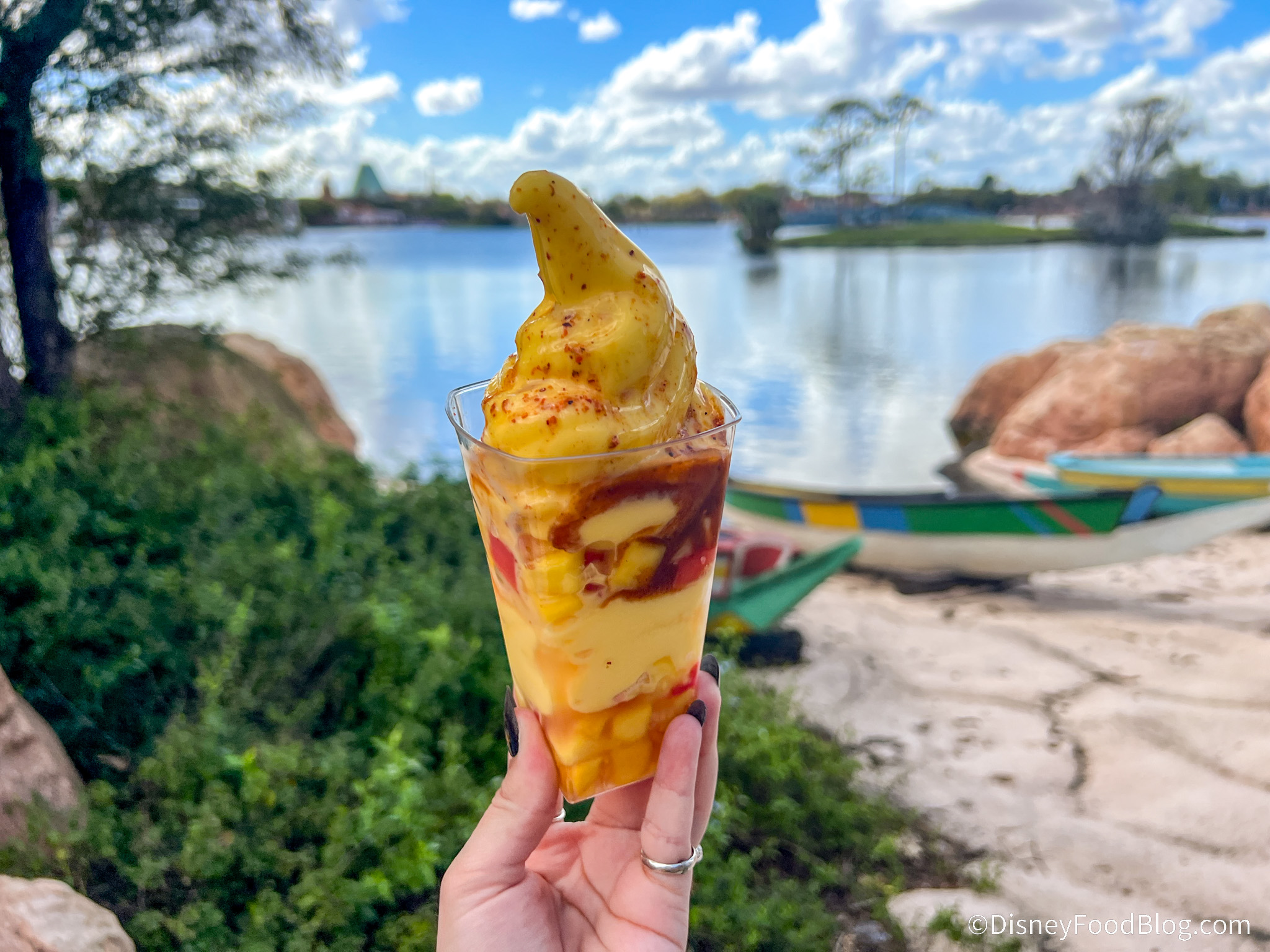 Last year, we found this parfait to be a good enough item. The mango DOLE Whip gives an intense, concentrated mango flavor that complements the Tajin, making for a really pleasant and balanced flavor. We could see the Mango DOLE Whip being too sweet for some, but we really enjoyed it, and we appreciated that the Cast Member asked us if we wanted the additional seasoning on top, so if you’re worried about the spice, you might be able to speak to the Cast Member.