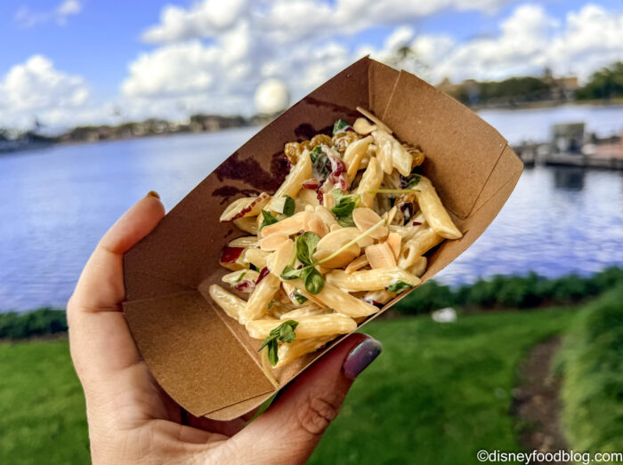 This is essentially a pasta salad, and we were surprised by it. The salad was lightly dressed, and you got a great crunch from the slivered almonds. The dish itself was light and tasty, and it surprised us considering it came from the Italy kitchen, which isn’t always our favorite at the festivals. We would 100% order this again!
