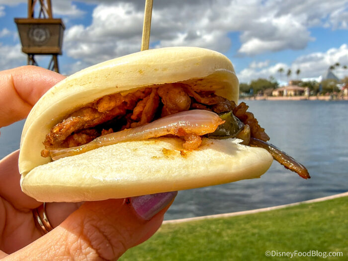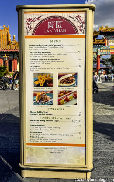 The Food Booth that is now known as Lan Yuan Outdoor Kitchen (which translates into “The Orchid Garden”) used to be called “Lotus House.” But, don’t you fret… Lan Yuan is still home to a few returning fan-favorites dishes (HELLO, Cheesy Crab Wontons!) along with some new surprises to discover. So, as we make our way around EPCOT to review every single Flower and Garden Festival Food Booth for you, we hope you’ll join us at Lan Yuan!