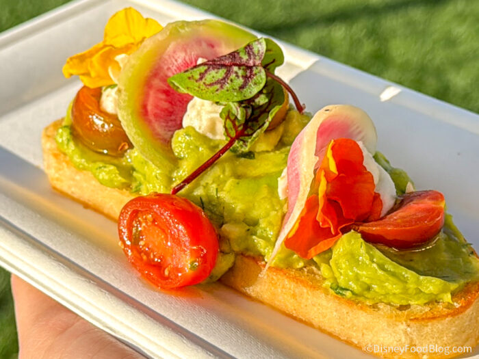 This is a delightful festival item yet again — the avocado really comes through, and there is a hefty portion of toppings. You get some brightness from the tomato, and the Boursin balances things out. The bread was a little on the stale side, and this was a smidge challenging to eat because it’s piled so high, but we love it nonetheless.