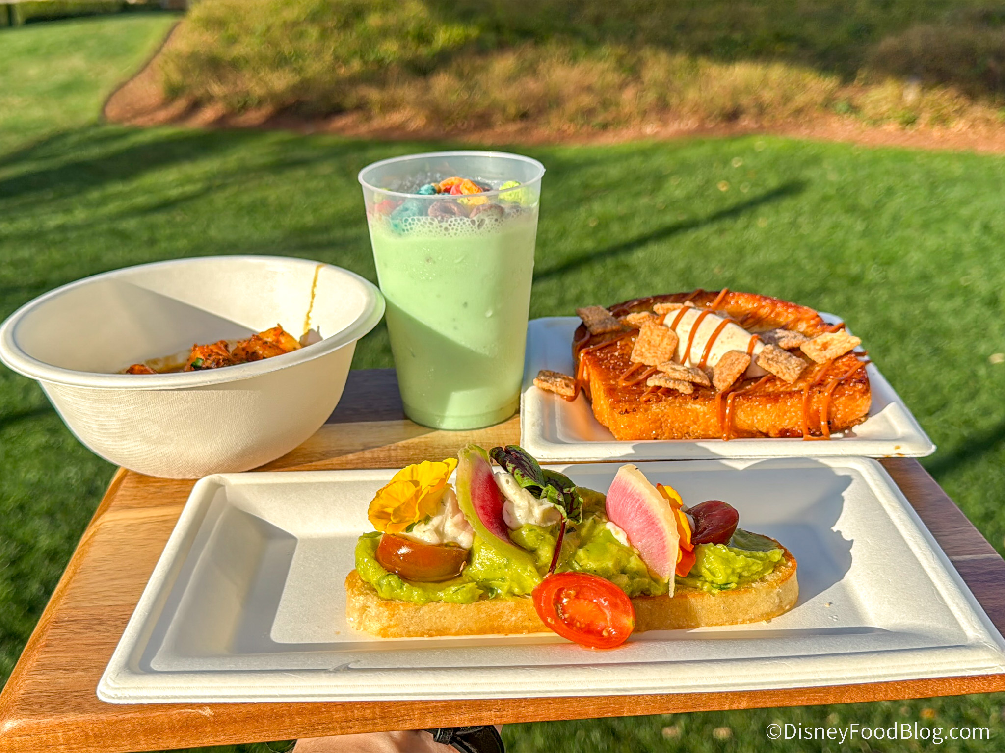 The always Insta-worthy Avocado Toast is $6.49 and is topped with marinated tomatoes and plant-based cheese crumbles, all served up on toasted ciabatta. This dish is basically a Flower and Garden Festival CLASSIC at this point, and we keep coming back for more. This plant-based dish is like a simple, classic avocado toast you can find at many breakfast restaurants, with all the salty, savory flavors we know and love. We’re excited to see if it brings those same beloved flavors!