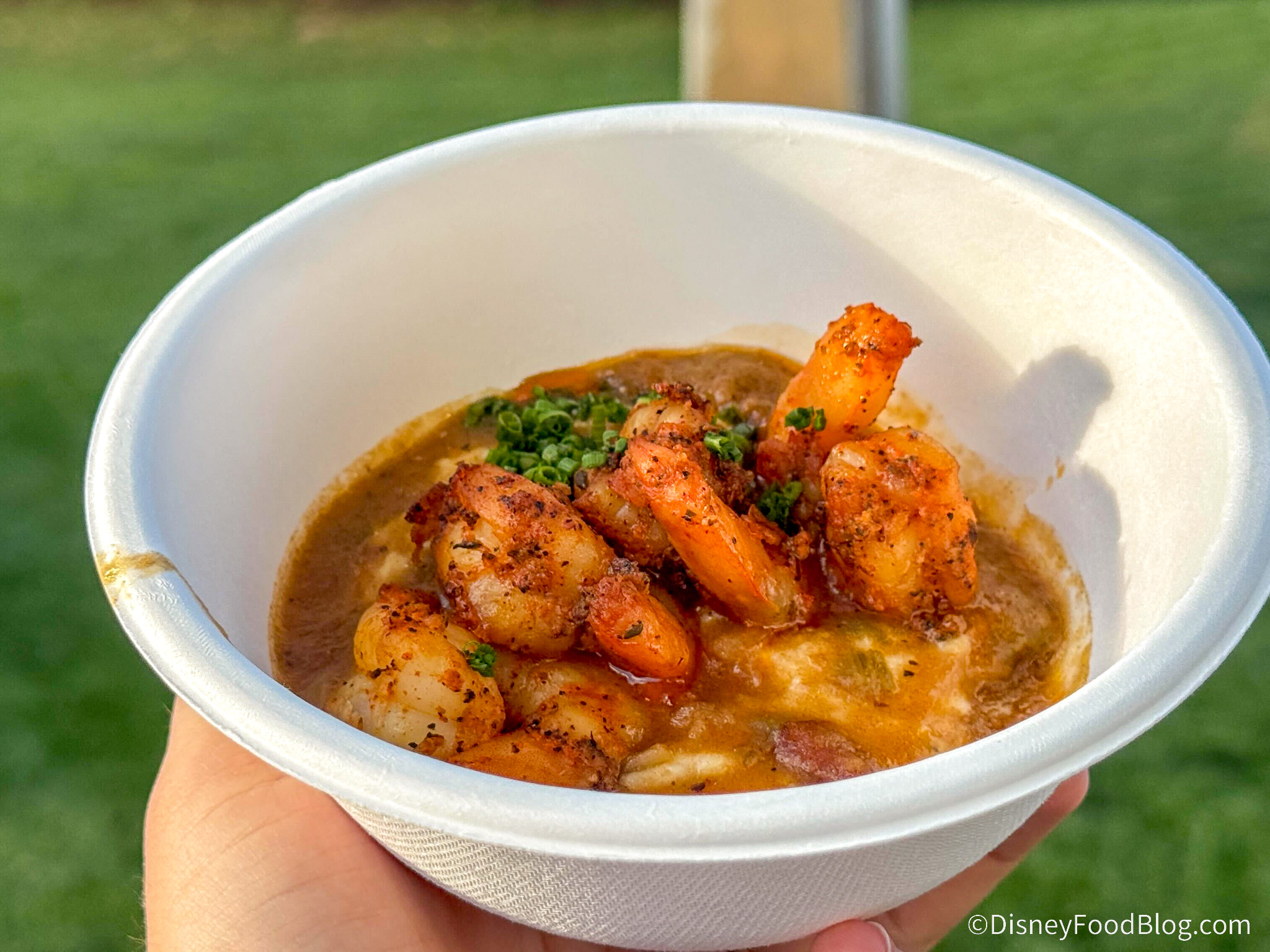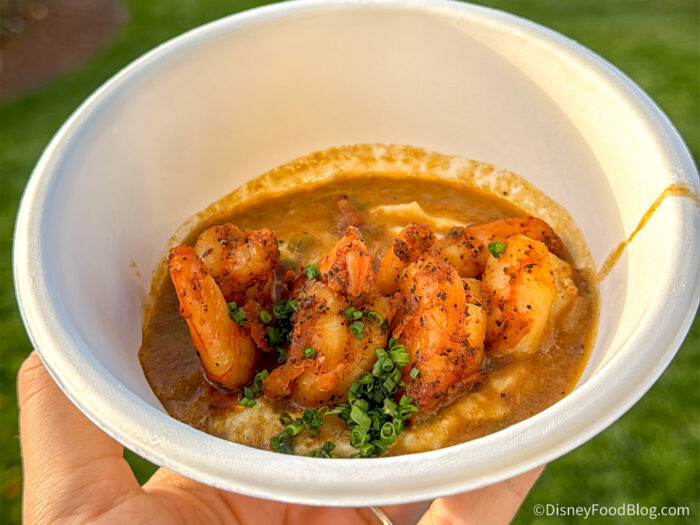 The thing we really loved about this dish is that the tails were removed from the shrimp (BIG props for that!), and they had a nice Cajun seasoning. The downside here is that the grits were a little bit congealed, which seems to happen often when EPCOT festivals serve dishes of this texture. They’re pretty delicious in taste, but the texture just wasn’t fresh enough.